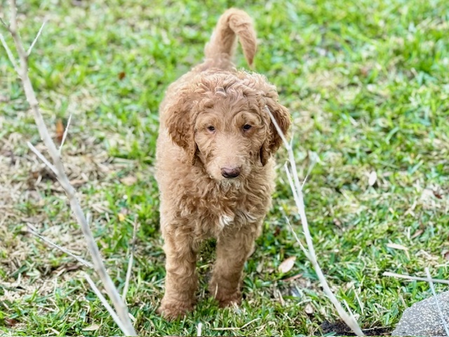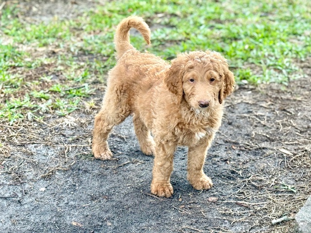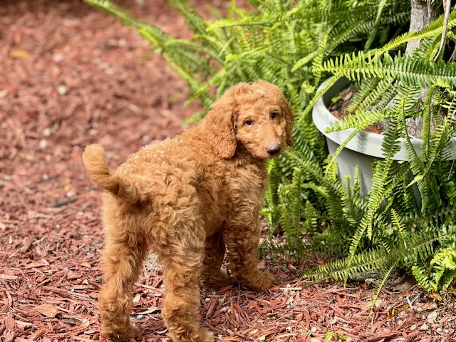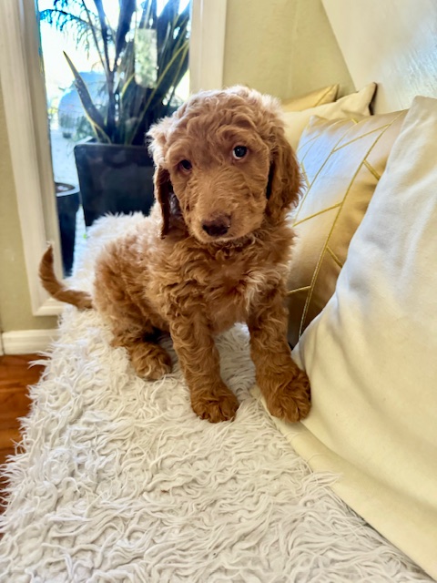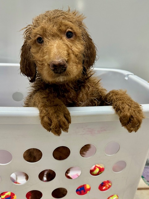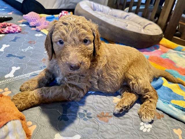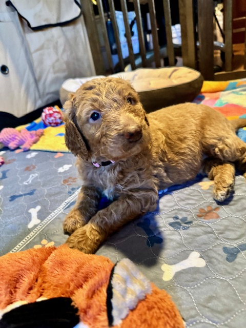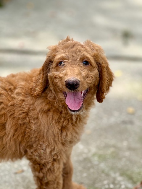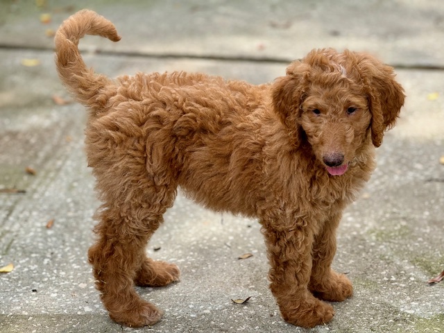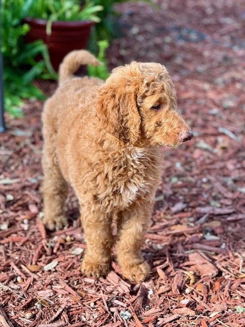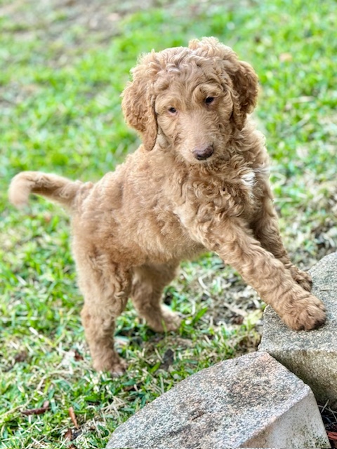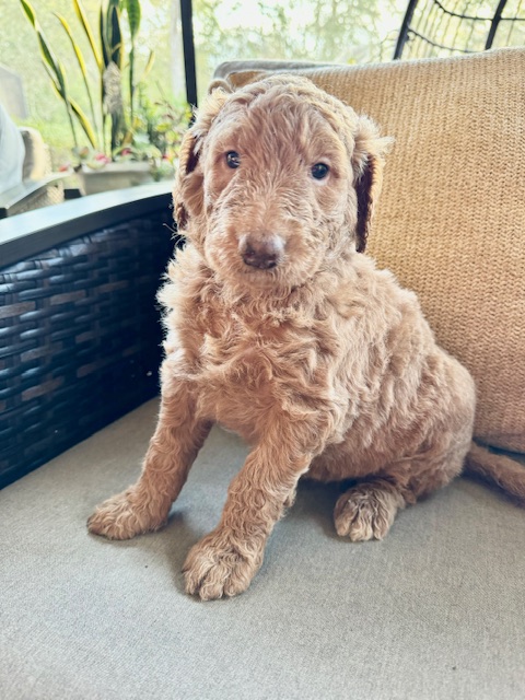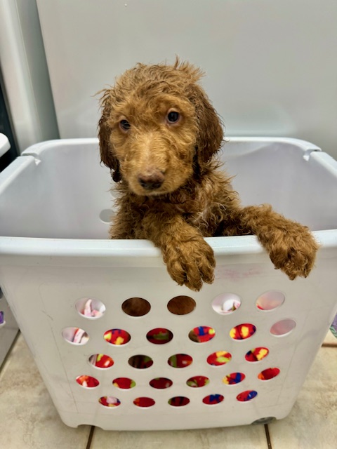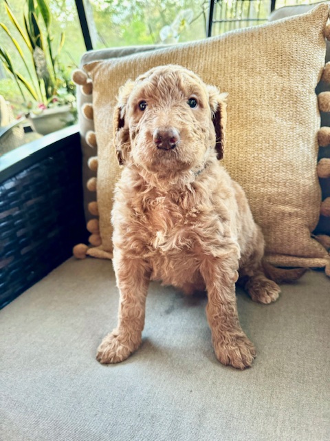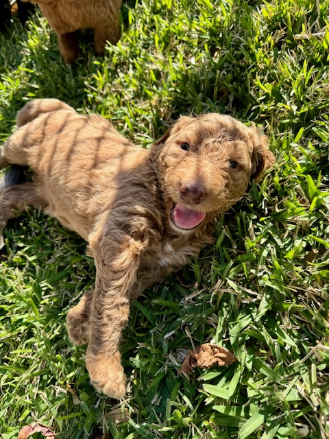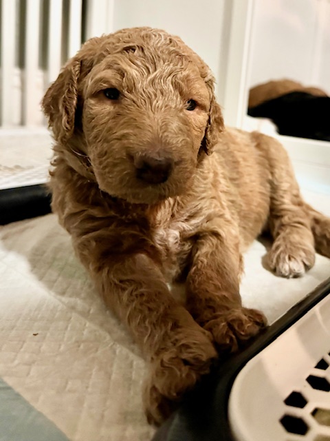 The last of the litter, a female puppy with an apricot (cream tips?) coat. The coat is quite wavy, thinking she’ll have a very curly adult coat.