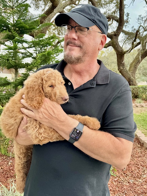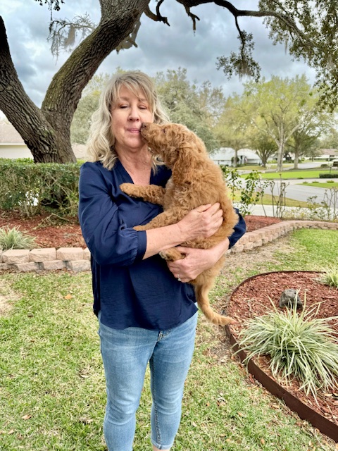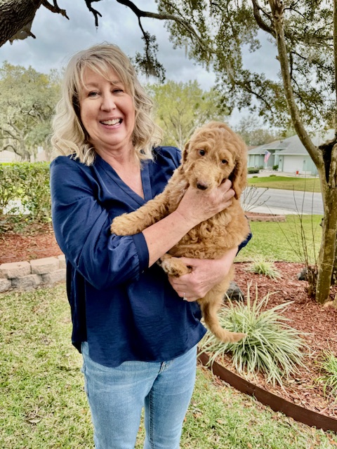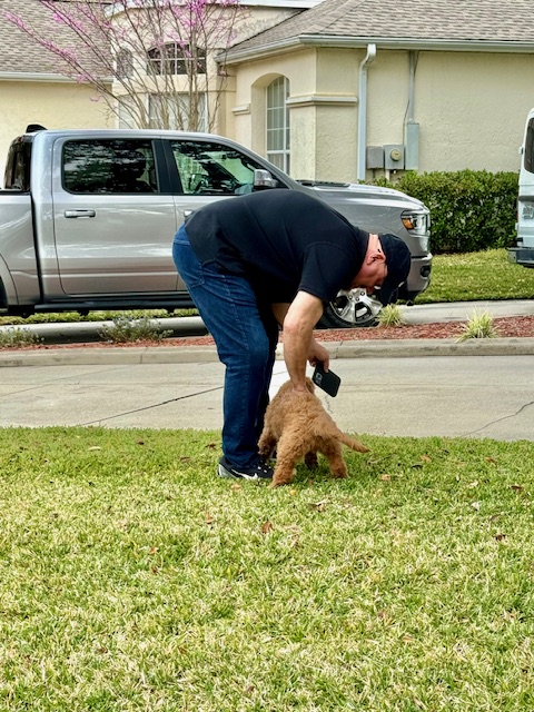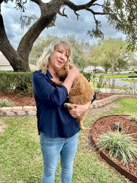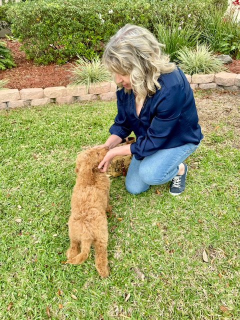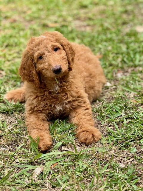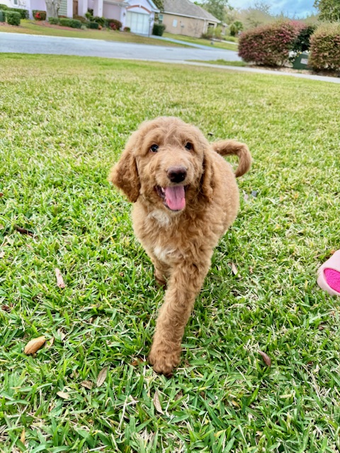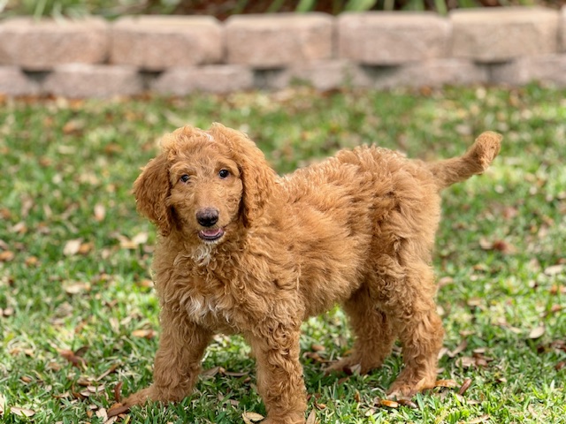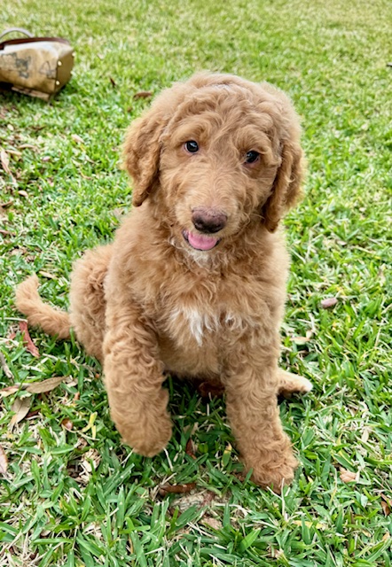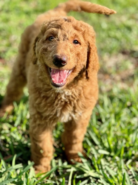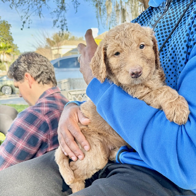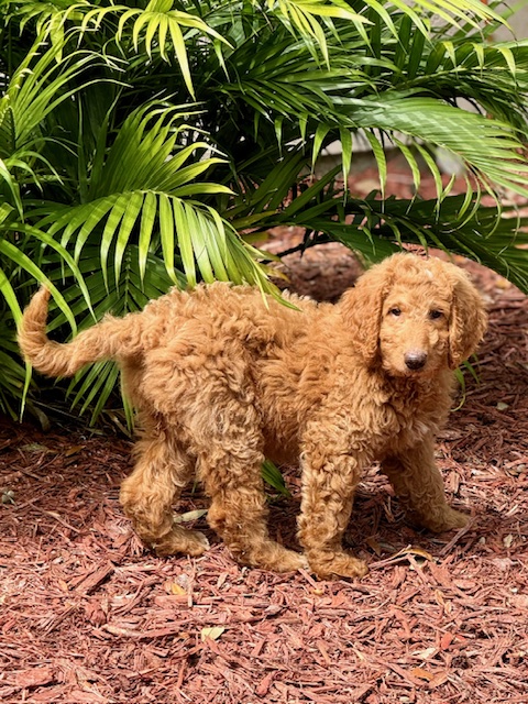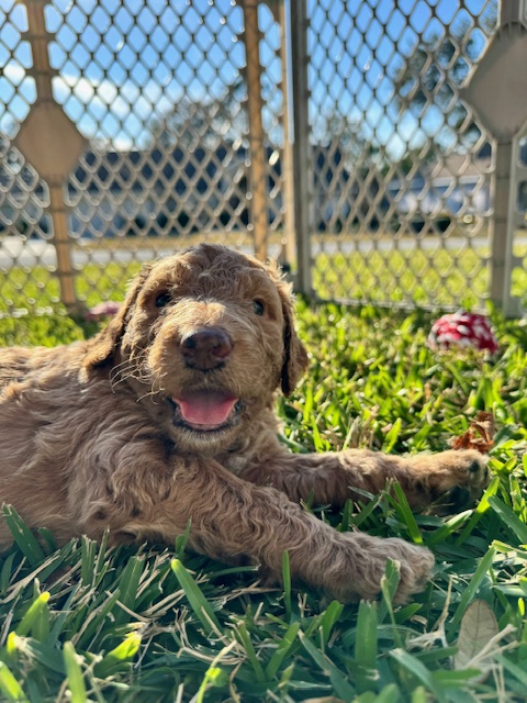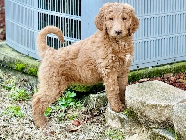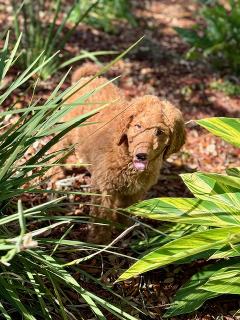 The last of the litter, a female puppy with an apricot (cream tips?) coat. The coat is quite wavy, thinking she’ll have a very curly adult coat.