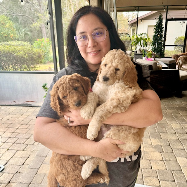 Once the family arrives, we meet with them in our front yard (weather permitting) for introductions and some videos/photos. We go over the Puppy Folder, sign the contract, finalize adoption fee payments, and answer any additional questions. We take a family photo with their new puppy, and we say our farewells. It’s always bittersweet for me since I definitely get attached to each one of the puppies, but the joy in the family’s faces always fills my heart and makes all of this so worth it! Plus, we strongly encourage all our puppy families to stay connected with us via social media, and we are here for them for the lifetime of their furbaby.