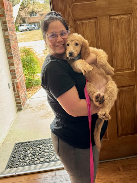 - Puppy gets his/her bandana (collar color) & takes “Gotcha Day” photos