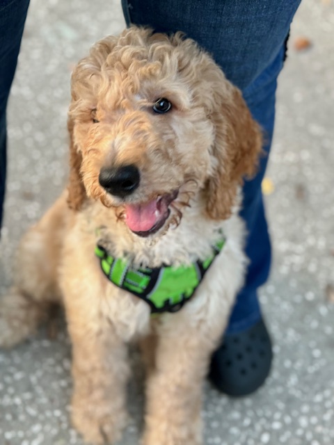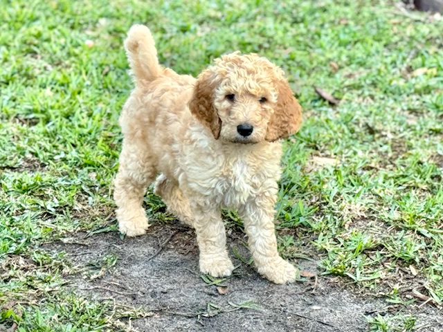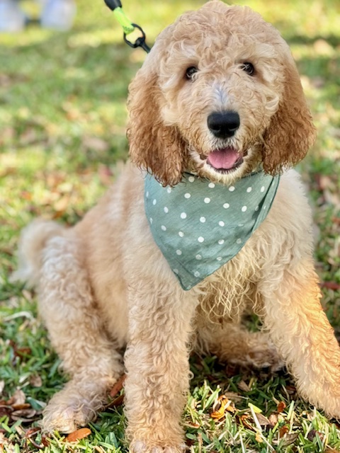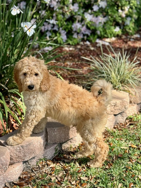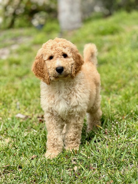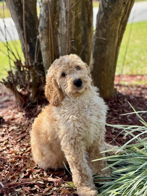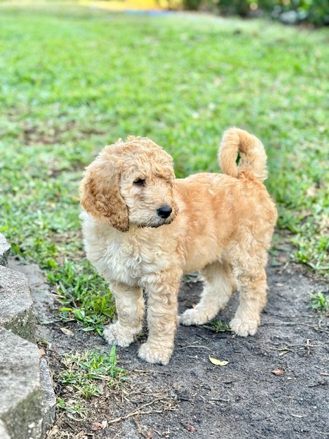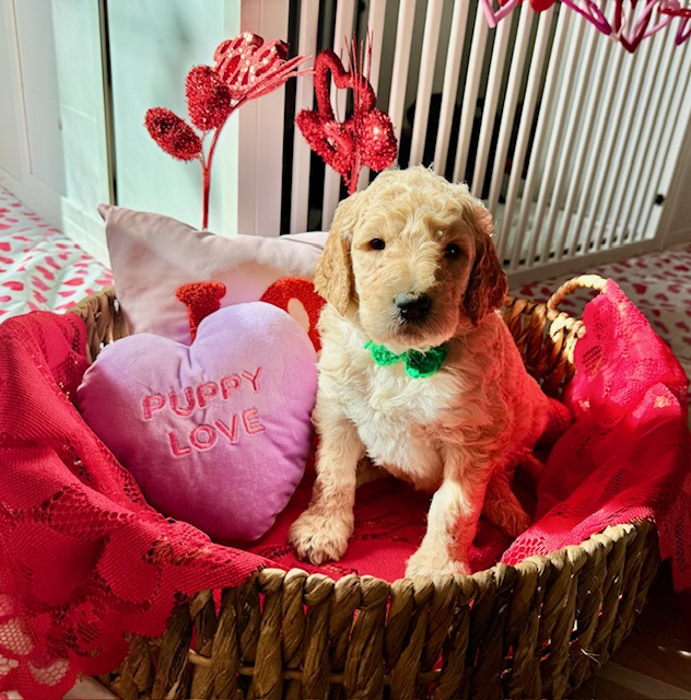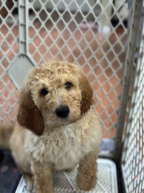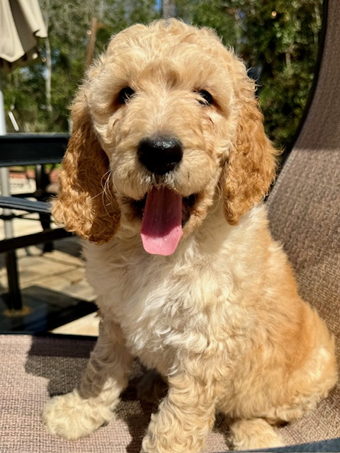 We have received so many inquiries for Apollo, but he still remains available. I just can’t believe no one has snatched up this cutie yet! He’s absolutely perfect in every way for a Goldendoodle puppy. He’s a cuddle bug, super smart, and is the biggest pup of the bunch. He has a beautiful temperament to match his great looks.